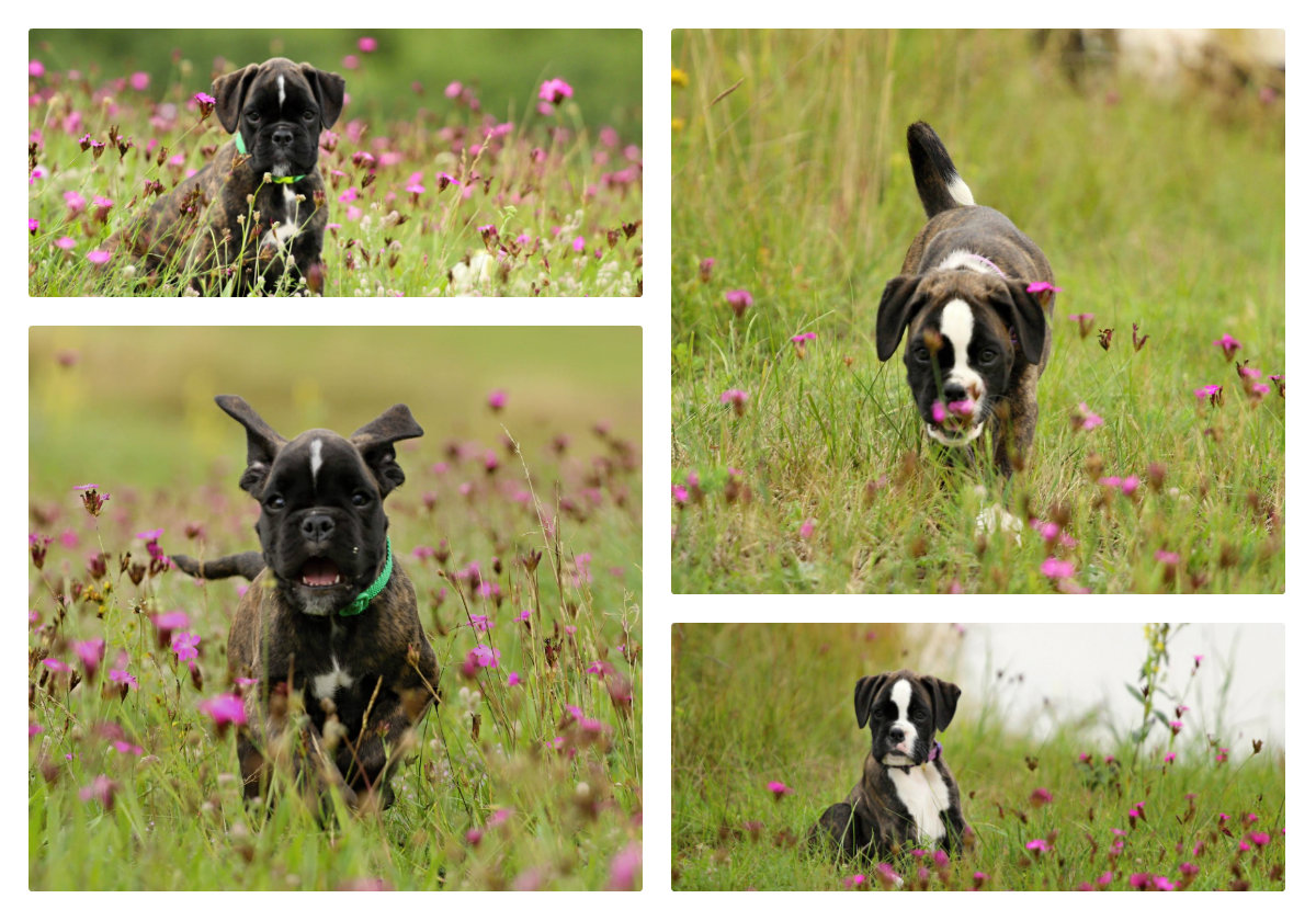 65. den - 4. června přišlo na svět osm šťěňátek. Čtyři žíhaní kluci, tři žíhané holky a jedna blondýnka.